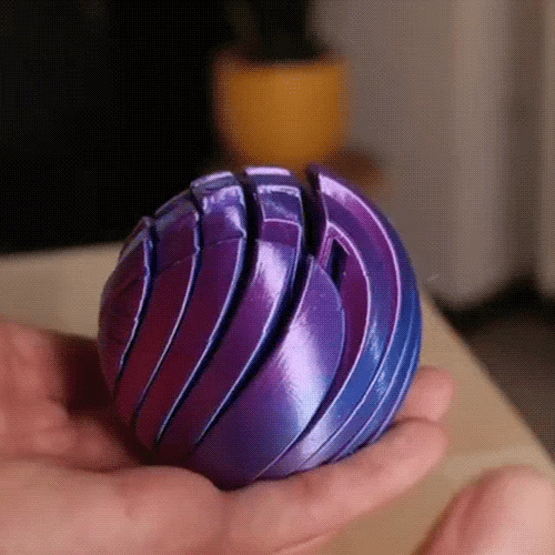 Traditional stress balls have one texture, one resistance level. Boring. This ball's print-in-place gear structure (no assembly, no glue) creates micro-variations every single squeeze: