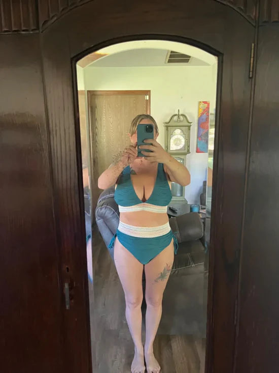 Our high-waisted bikini features tummy control with ruched detailing and a wide drawstring waistband, creating a flattering, slimming effect that highlights your waistline. Offering moderate coverage, this design provides the perfect balance of comfort and confidence, making it ideal for various body types.