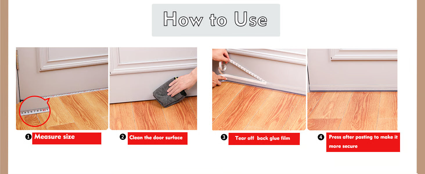 the weather stripping tape easy to intall or tear off without leaving any residue or damage to the surface when you don't need it.the seal strip also help your house away noise,wind