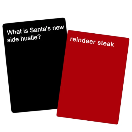 Forget complicated rules!Shuffle, deal, and play in under 2 minutes.Watch the room erupt with gut-busting laughter as hilarious and unexpected card combinations take center stage. It’s the fastest way to ignite holiday cheer at any gathering.
