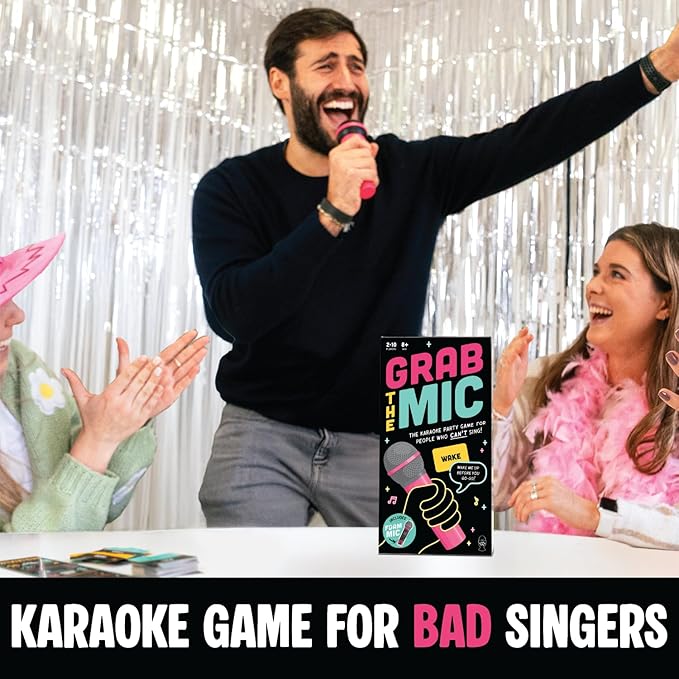 Flip a card, think quickly, and race to grab the foam microphone to sing a lyric containing the revealed word. It's a fast-paced game that keeps everyone on their toes!