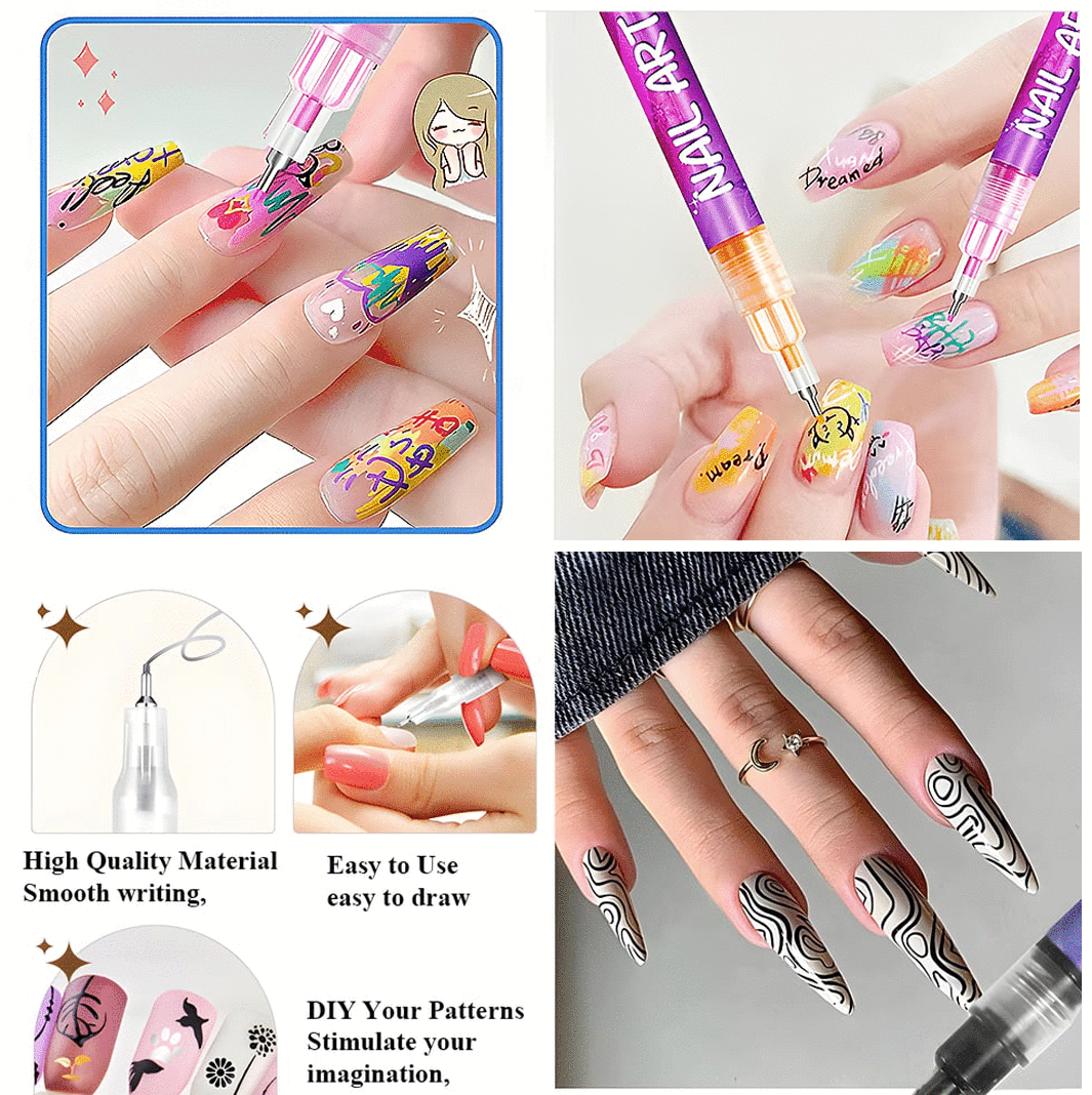 pen, you can freely craft various designs, from simple dots and lines to elaborate 3D nail art. This DIY nail art drawing painting pen set allows you to personalize each manicure for any event.