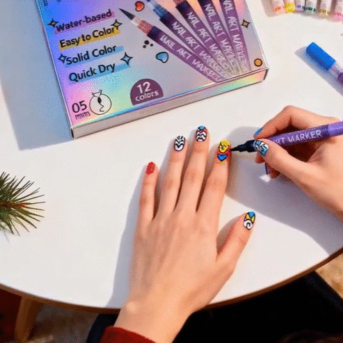 I get 12 vivid shades with a 0.5mm fine tip to create sharp, eye-catching nail art easily.
