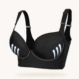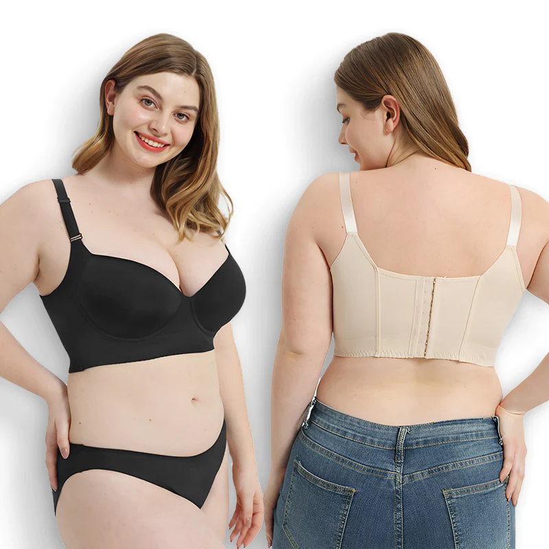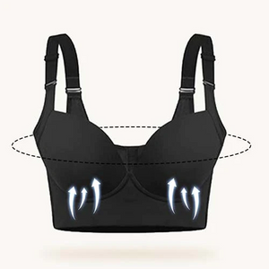 The design of 5D seamed cups, wide side wings, strong cushioned shoulder straps, and U-shape back panel ensures maximum support against sagging while smoothing back bulges and correcting armpit fats for a flattering silhouette.