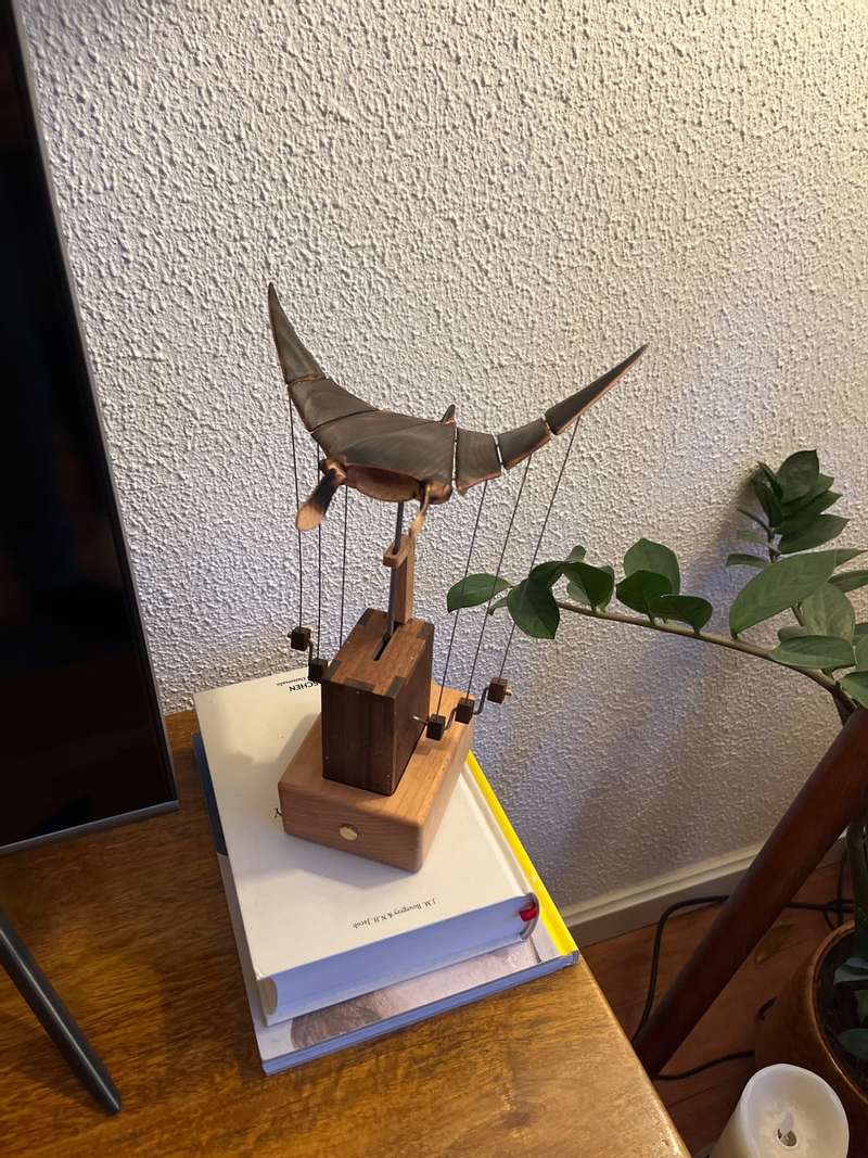 Each manta ray begins as solid walnut and beech, cut from real logs and brought to a working craft bench, not a factory line. The body is hand carved and finely sanded, then sealed with eco-friendly wax oil so every curve feels warm and organic. The base is machine-cut for structural precision, but every gear, rod, and joint is hand-fitted, adjusted, and test-run until the glide feels smooth and lifelike. Made in small batches, each piece carries its own grain, color, and tiny tool marks – the quiet proof that your automaton is a studio artwork, not a mass-produced gadget.